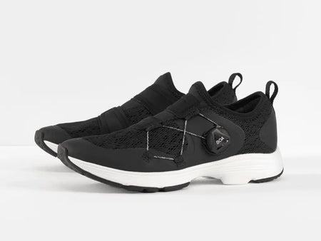 Stylish clip-in shoes designed for performance on the stationary bike and comfort during pre- and post-workout routines.