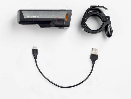 A powerful front bike light with a wide beam that illuminates any road or trail and can be seen from 2km away as a daytime running light.