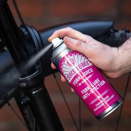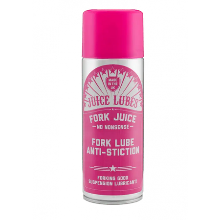 Fork Juice is a do-it-all spray-on suspension lube and protectant. It lubes seals and stanchions, drives grime out from deep in your fork and leaves a protective, non-stick layer. Your fork and shock will feel plush like new and will move faster and smoother when you’re out slaying singletrack