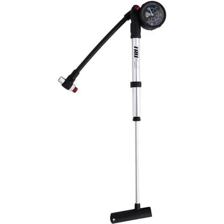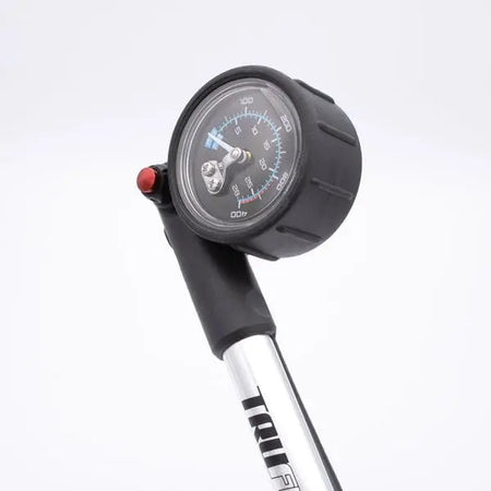 - Precision shock pump for tuning suspension forks and rear shocks, featuring a dial pressure gauge