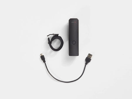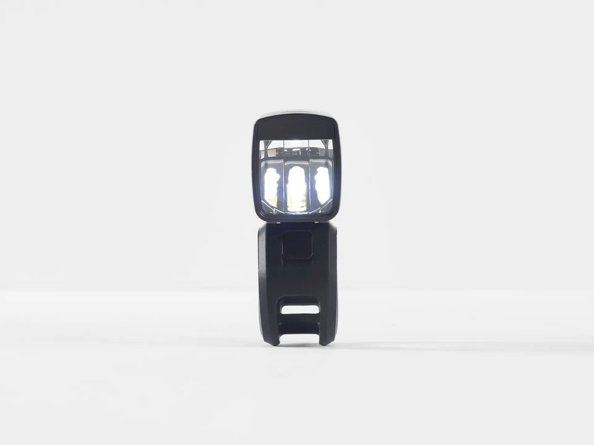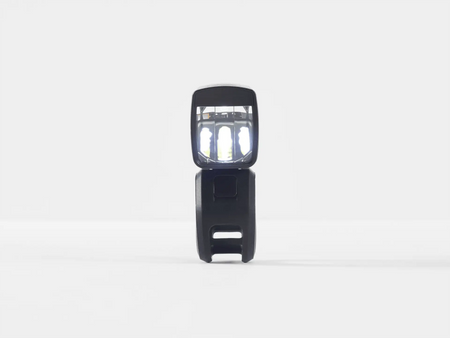 A bright front light with Kindbeam, designed to keep light on the path ahead and out of oncoming riders' eyes.